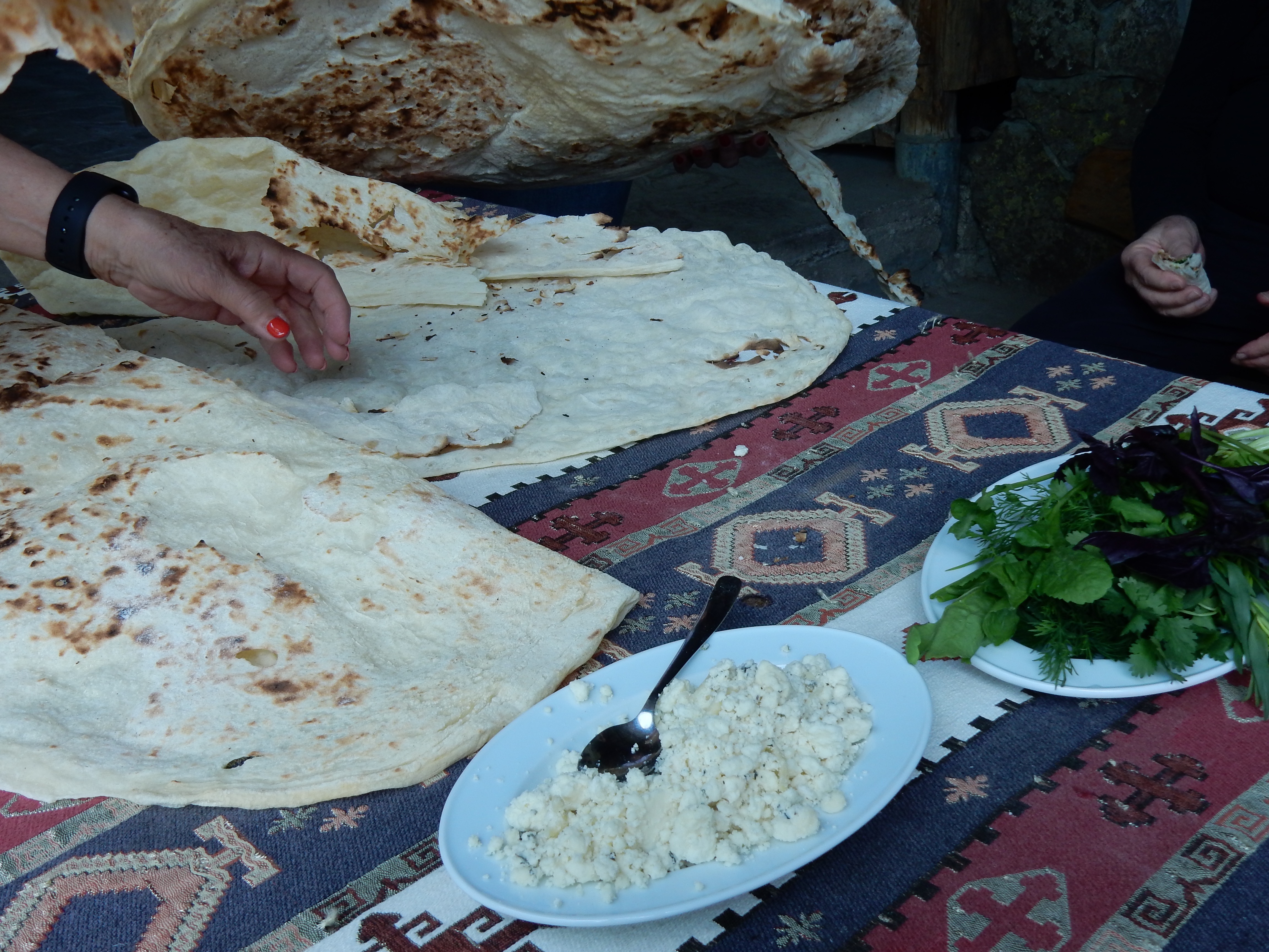 Zur Ehrrettung der traditionell rustikal armenischen Küche sei allerdings erwähnt, dass ihre nahezu sämtlichen – punktuell mit libanesischen Mezzeh vergleichbaren Vorspeisen – hervorragend munden! Als da wären: Salat mit Linsen, Auberginenrollen, Bulgursalat, Sauerampfersalat mit Nüssen, Salat mit roten Bohnen, eingelegtes Gemüse, Suppe mit Linsen und Sauerampfer, Bohnensuppe, usw.. Auch ihre Hauptspeisen mit Poulet, Kalb und/oder Lamm können fein sein; bloss wird selbst Rind in Art eines Siedefleisches permanent richtiggehend durchgekocht, sodass es auf dem Teller eher zäh daher kommt. Und ja, eben erwähnte Rahmsösschen sind allgegenwärtig…