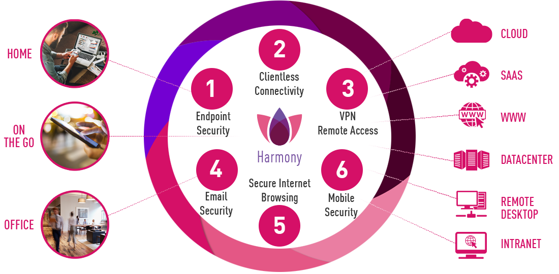 Check Point Harmony adressiert diese Herausforderungen, weil es Endpunkt-, Browser-, E-Mail- und Remote-Access-Sicherheitskomponenten unter einen Hut bringt, um alle Anwendergeräte und die Netzwerke, mit denen sie sich verbinden, gegen bekannte und unbekannte Bedrohungen zu schützen. Harmony integriert damit die wichtigsten Sicherheitsfunktionen in einer einzigen Lösung: