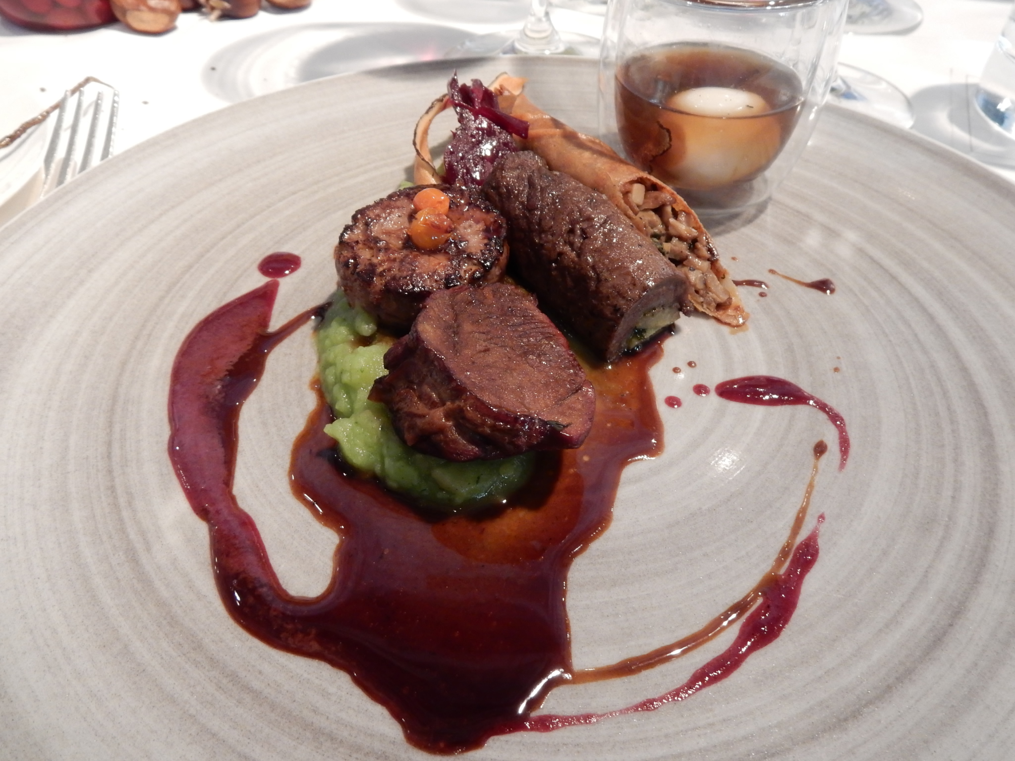 Variation vom Dammwild zu Roulade aus Wildtrauben, Gänsedistelpüree, Schwarzdorn-Coulis, Steinpilzröllchen (Foto jpr)