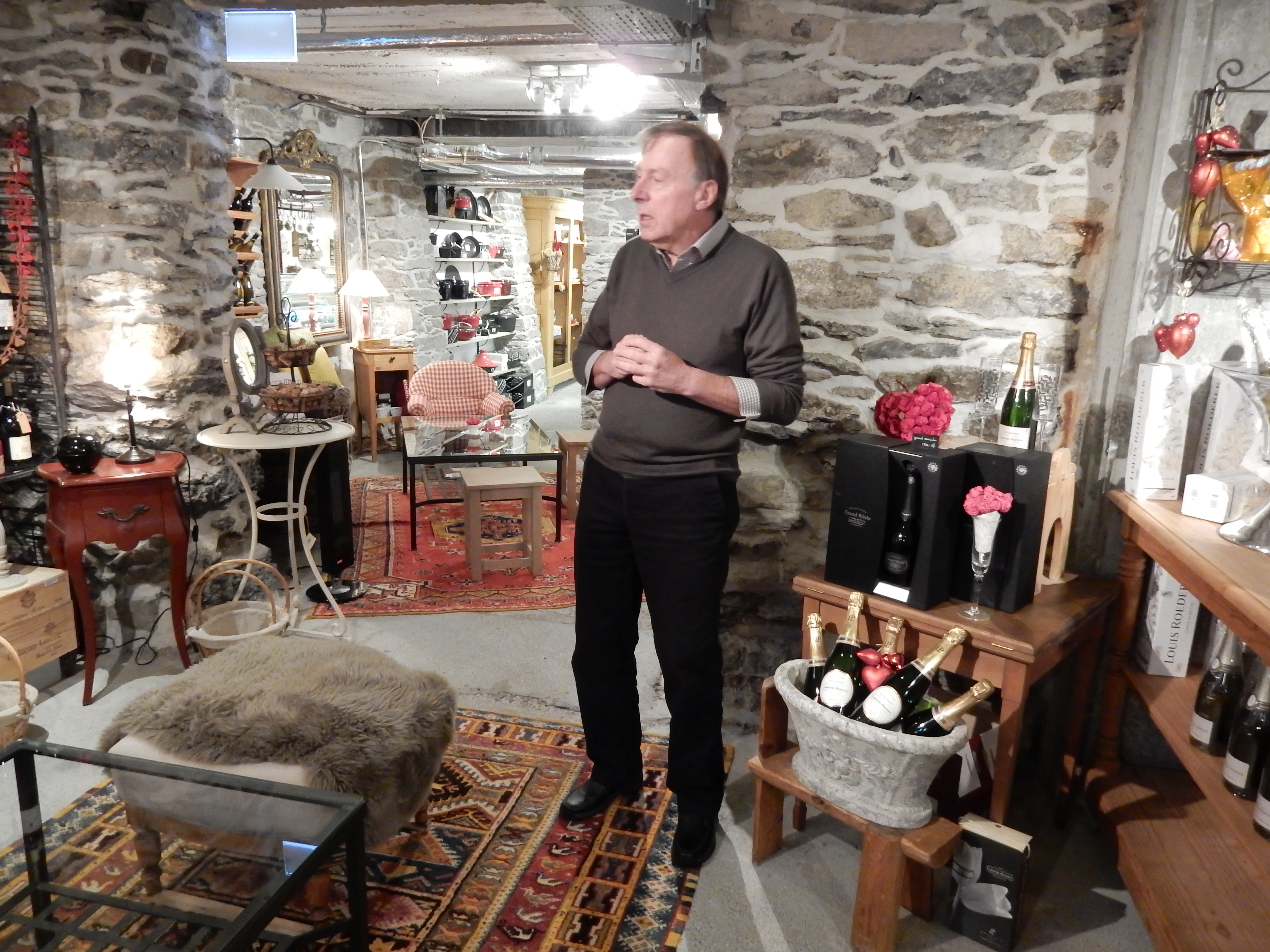 …finden sich im Kellergeschoss des herrschaftlichen Hotels. Hier liegen Tischdekorationen, hausgemachte Süssigkeiten, salzige Köstlichkeiten sowie edle Weine zu vernünftigen Preisen aus der Schweiz, Frankreich und Italien als Mitbringsel auf. Zudem lädt eine kleine Bar im Mittelpunkt des Gewölbes zum Entspannen und Geniessen ein. Als Mitglied des „Organisationskomitees Lauberhornrennen“ klärt uns Hausherr Guido Meyer hier am Vormittag des anderen Tages zu diesem sowie zur Geschichte des Hotels und dessen Besonderheiten auf.
