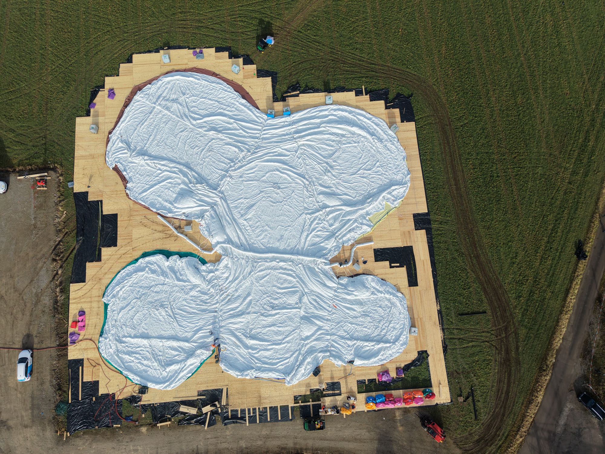 Drohnenaufnahme des Phänomena-Ausstellung im Aufbau
