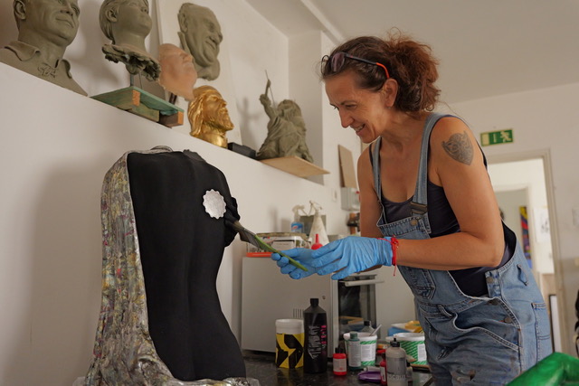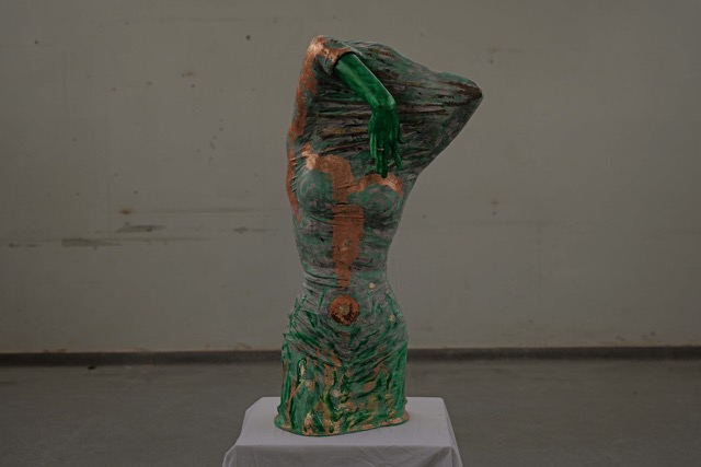 Die Werkgruppe Women’s Pride beschäftigt sich mit innerer Stärke, weiblicher Selbstbehauptung sowie Ambivalenz zwischen Sicherheit und Verletztlichkeit. Sowohl in drei Gemälden wie auch drei plastischen Arbeiten erforschte die Künstlerin, wie sich Stolz – körperlich, emotional und symbolisch – in Material und Form ausdrückt. Deren vielschichtige Mischtechnik wirkt wie emotionale Landschaften, durchzogen von Fragmenten, Farbschichten und Erinnerungen. Wogegen die Plastiken selbes Thema in die dritte Dimension transferieren: Abstrahierte Körperformen, die Raum einfordern, dienen als Zeichen von Würde, Präsenz und Selbstermächtigung. Judit Nagy L.’s Werke wollen nicht erklären, sondern berühren. Diese laden zu stiller Resonanz zwischen Körper, Blick und Erinnerung ein.