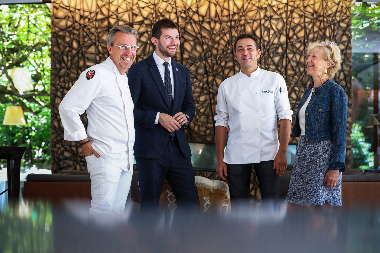 Laurent & Martine PETIT übertragen das von ihnen vor 30 Jahren gegründete und seither erfolgreich aufgezogene Relais & Château samt 3*-Michelin-Sterne-Gourmet-Restaurant an ihre Getreuen Thomas Lorival – Geschäftsführer und Sommelier in Personalunion – sowie Franck Derouet als längst gestählter, meisterhafter und intellektueller Spitzen-Chefkoch. Der seit einiger Zeit angepeilte Kompromiss des Geschäftsverkaufs ist per 29. September ’22 über die Bühne, die Uebergabe des physischen Anwesens und Betriebes dürfte in einem nächsten Schritt vollzogen werden.
