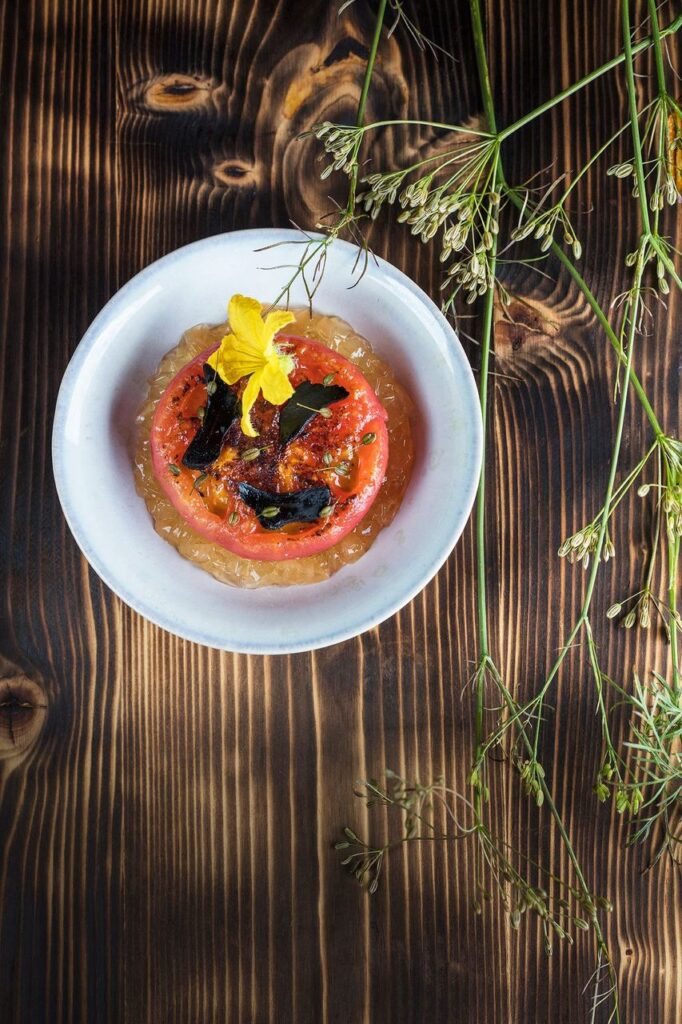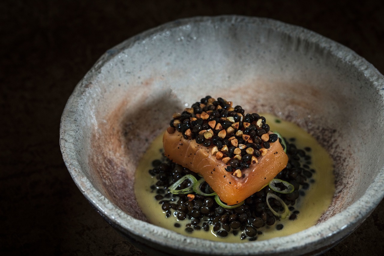 Eines der edlen „state of the art“-Spitzen-Gerichte des Clos des Sens (Crédit photo Matthieu Cellard)