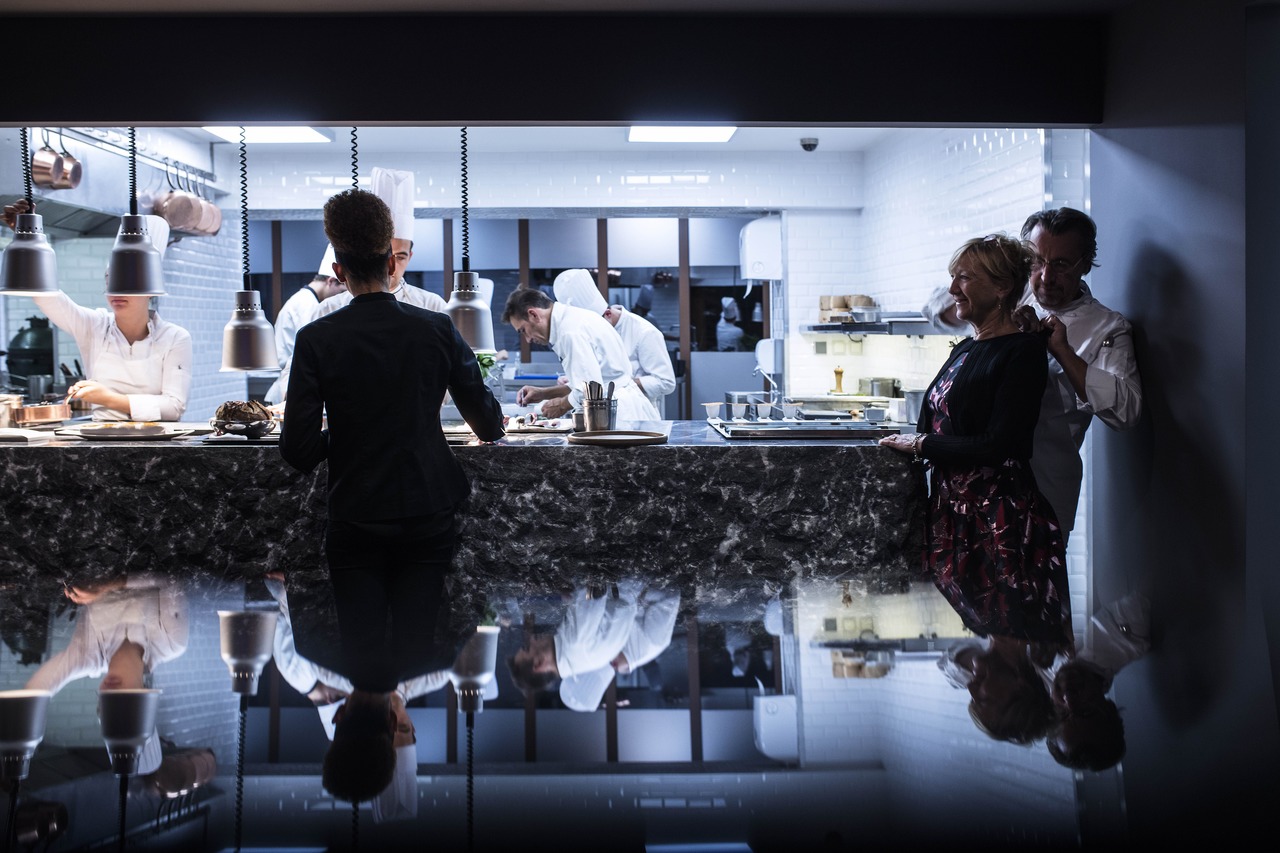Die vom Inneren des Gourmet-Restaurants einsehbare Küche (Crédit photo Matthieu Cellard)