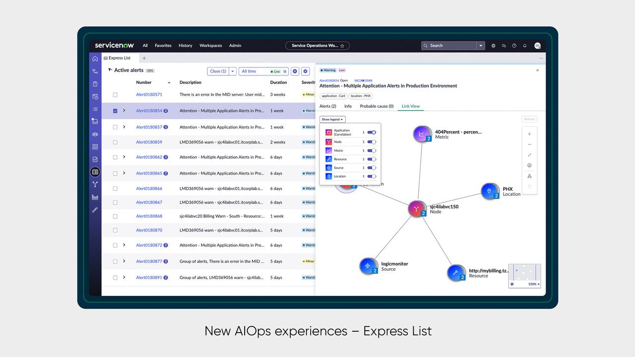 - Der Now Assist für ITOM AIOps ermöglicht eine schnellere Problemlösung durch präzise Analyse von Warnmeldungen und die Bereitstellung relevanter Kontextinformationen für die Nutzer. Now Assist for ITOM AIOps wandelt komplexe, maschinengenerierte Alarme in verständliche natürliche Sprache um und erleichtert so das Verständnis, die Prävention und die Behebung von Störungen.