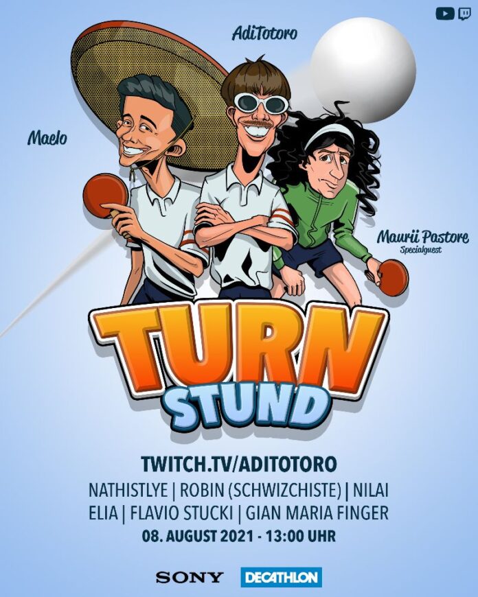 Mit «Turnstund» findet am 8. August 2021 ab 13 Uhr zum ersten Mal ein grosser Schweizer Twitch-Live-Event statt. Die bekanntesten Schweizer YouTuber und Social Media-Influencer werden zu diesem Anlass in einem Pingpong-Turnier gegeneinander antreten. Übertragen wird die «Turnstund» live auf der Streaming-Plattform Twitch über den Kanal von Adrian Vogt «Aditotoro», der neben Maelo Romani und Elia Rohrbach zugleich zu den Veranstaltern des Events zählt. Beim Turnier wird wie im Tennis in einem klassischen Bracket-System gespielt, bei dem mit einer Gruppenphase gestartet wird und die Gewinner jeweils in die nächste Runde kommen.
