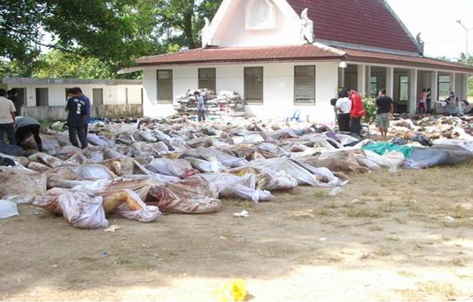 Nach diesem Horror-Tag zieht es mich nur noch ins thailändische Zuhause; aber Freund Tow kehrt auf dem Heimweg in einen Tempel ein, und was dort zu sehen sei, habe jegliche Vorstellungskraft gesprengt: Hunderte, in Tücher eingewickelte Leichen auf einem Stapel, und laufend neue werden hinzugelegt! Ich fühle mich unmittelbar ohnmächtig vor lauter Trauer, Schmerz und Mitgefühl, und kann kaum nachvollziehen, wie ein solch apokalyptisches Naturereignis über die Menschheit an der Westküste Thailands hereinbrechen kann.